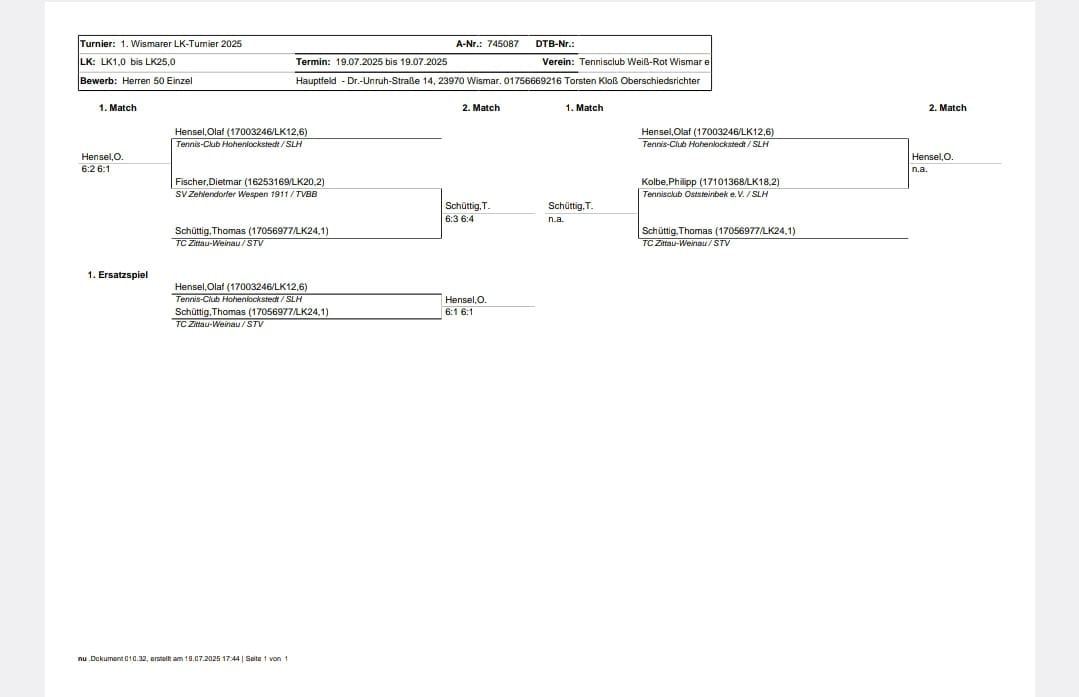 1. Wismarer LK-Turnier 19.07.2025